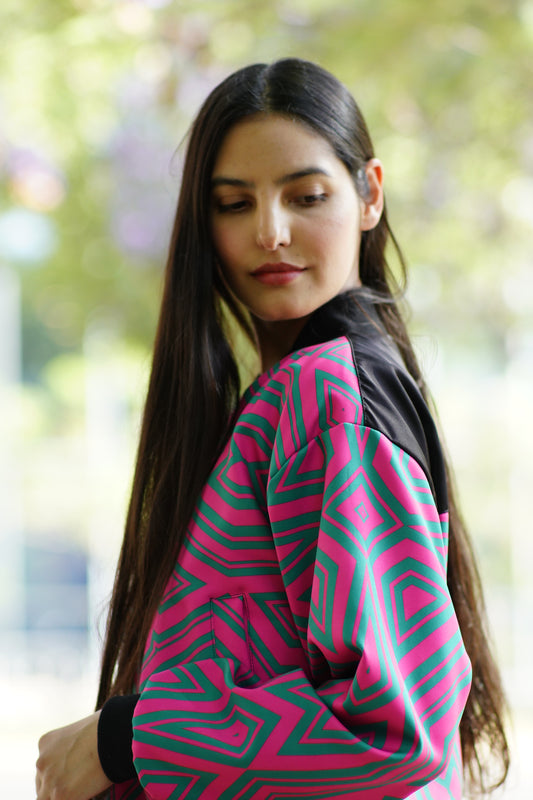 BOMBER FUCSIA Y VERDE.