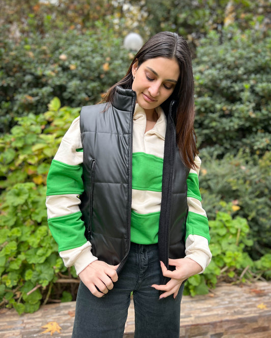 CHAQUETA PUFFA MANGA CORTA NEGRA.