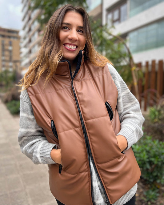 CHAQUETA PUFFA MANGA CORTA CAMEL.