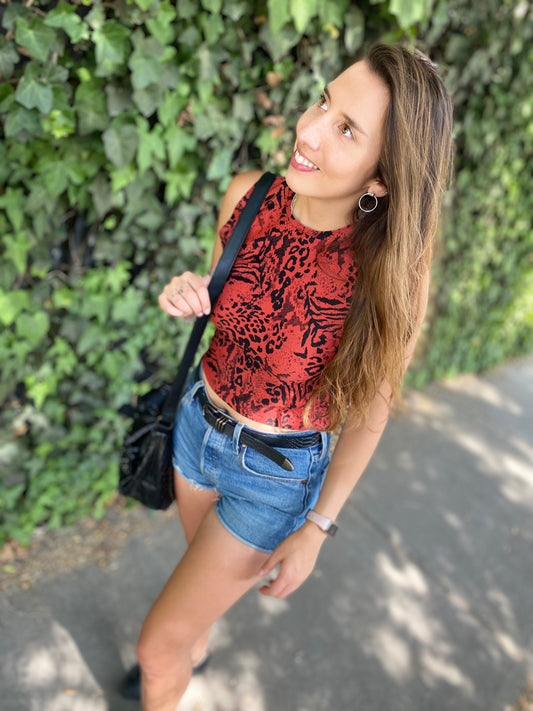 CROP TOP CUELLO ALTO ROJO.