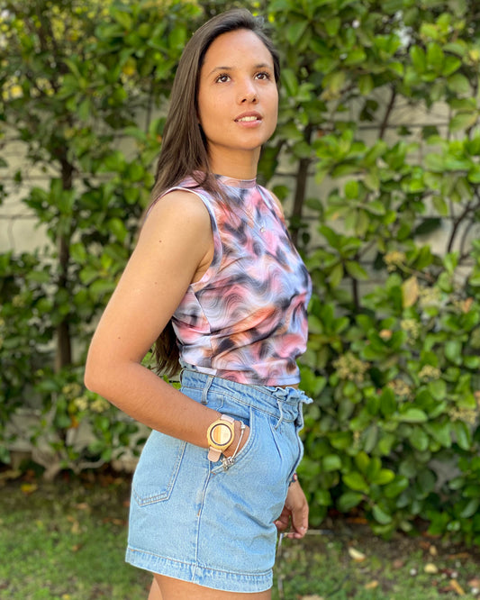 CROP TOP CUELLO ALTO ONDAS.